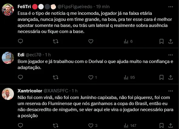 Além disso, também fez parte do elenco da Chapecoense, em 2018, quando Rui Costa, hoje diretor do São Paulo, estava a frente do futebol da Chape. Ou seja, os dois se conhecem bastante também.