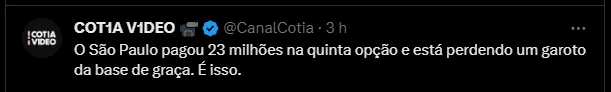 “O São Paulo pagou R$ 23 milhões na 5ª opção e está perdendo um garoto da base de graça“, disse um torcedor. Fora da lista de relacionados, a torcida pensa na possibilidade de Ferraresi não estar nos planos do treinador.