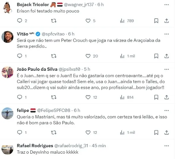 No fim das contas, o São Paulo quer priorizar a chegada de um jogador que possa fazer frente e que seja uma opção inclusive, para mudar os jogos de que é necessário.