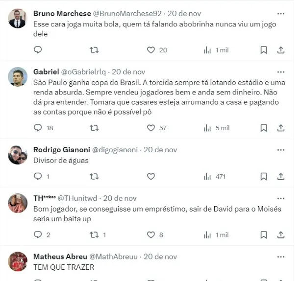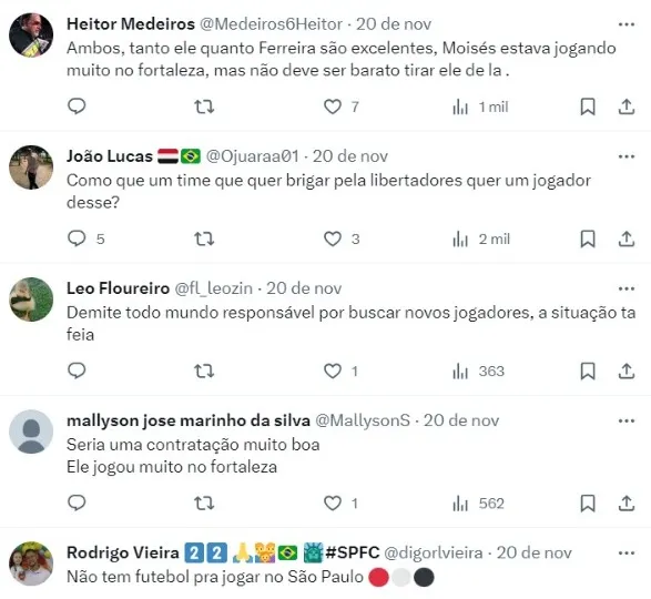 Opinião dos torcedores do São Paulo sobre Moisés