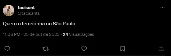 Recentemente, inclusive, o atacante chegou a ser vaiado pela torcida diante do Athletico-PR, por conta de uma atuação ruim que resultou em derrota em campo. Nesta temporada, Ferreirinha soma 31 jogos, com 11 participações em gols. No elenco do São Paulo, ele pode ocupar a ponta, posição tão pedida pelas últimas comissões técnicas.