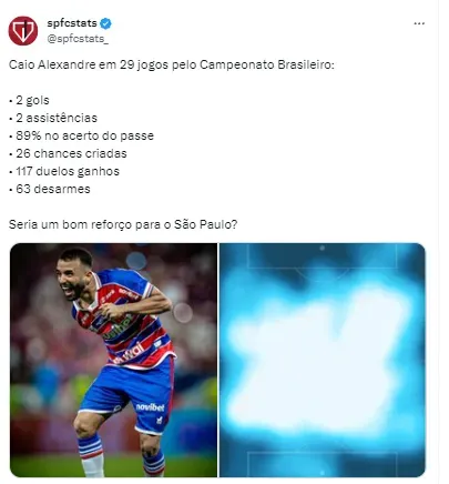 Já pensando na próxima temporada, um nome que surgiu no mercado de transferências do São Paulo é o do meio-campista Caio Alexandre. Segundo informações apuradas pelo jornalista Jorge Nicola, houve uma atualização sobre o meia do Fortaleza.