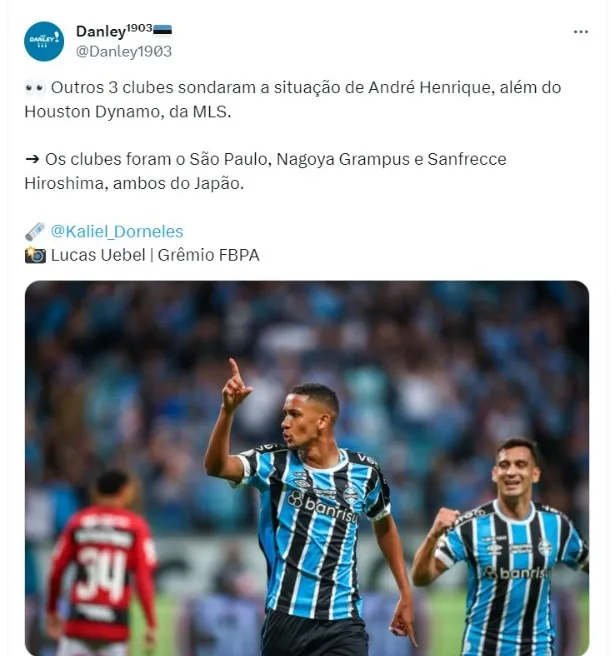 Segundo Kaliel Dorneles, que cobre o dia a dia do Grêmio, André Henrique recebeu há cerca de três semanas, sondagem do Houston Dynamo, da MLS, mas não parou por aí.