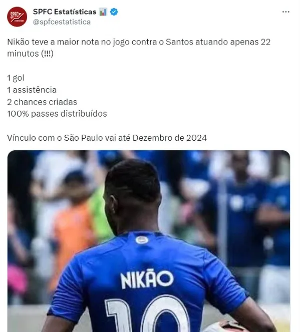 O meia-atacante Nikão, não estava fazendo uma boa temporada com a camisa do Cruzeiro. Sem se adaptar a cidade de São Paulo, o jogador foi negociado por empréstimo até o fim da temporada na tentativa de recuperar o seu bom futebol. Agora, ele se tornou um dos principais jogadores do time comandado pelo técnico Zé Ricardo.
