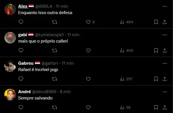 “O melhor da partida de hoje tem nome. Tem nome de RAFAEL”, “É muito bom ter goleiro!”, “Sempre salvando” e “Salvou o Tricolor em duas bolas nas costas do Igor”, foram alguns comentários.