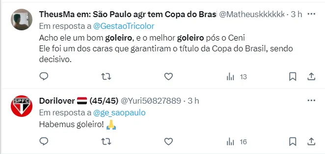 O goleiro Rafael foi contratado pelo São Paulo no começo de 2023 com a missão de resolver os problemas no gol do tricolor. O goleiro se firmou como titular da equipe e vem cada vez mais caindo nas graças da torcida.