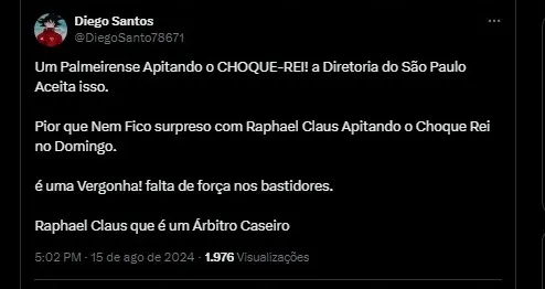 Após a divulgação, vários torcedores do São Paulo criticaram a escalação de Claus e relembraram a goleada sofrida por 5 a 0 no Allianz Parque na temporada passada. Vale lembrar que o Claus era o árbitro da partida.
