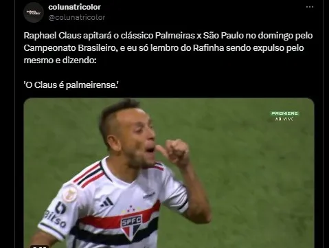 Outro detalhe é que, após ser expulso, Rafinha disse várias vezes que o árbitro torcia para o Palmeiras, colocando em xeque sua credibilidade de Raphael. Confira a seguir as principais reações da torcida do São Paulo.
