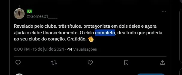 Revelado pelo clube, três títulos, protagonista em dois deles e agora ajuda o clube financeiramente. O ciclo completo, deu tudo que poderia ao seu clube do coração. Gratidão. 🫡