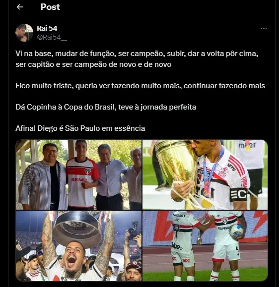 A maioria deles fez menção ao título da Copa do Brasil de 2023 e a conquista da Supercopa do Brasil contra o Palmeiras no início da temporada. Além disso, um dos torcedores lembrou o tempo sem títulos do tricolor e que o zagueiro fez parte da retomada no ano passado.