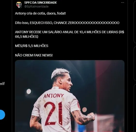 Após toda essa especulação, o Jornalista André Hernan disse que o jogador virá para clube paulista após apurar com diretoria e o staff do atleta. Confira a seguir as reações da internet com a notícia de Antony no São Paulo.