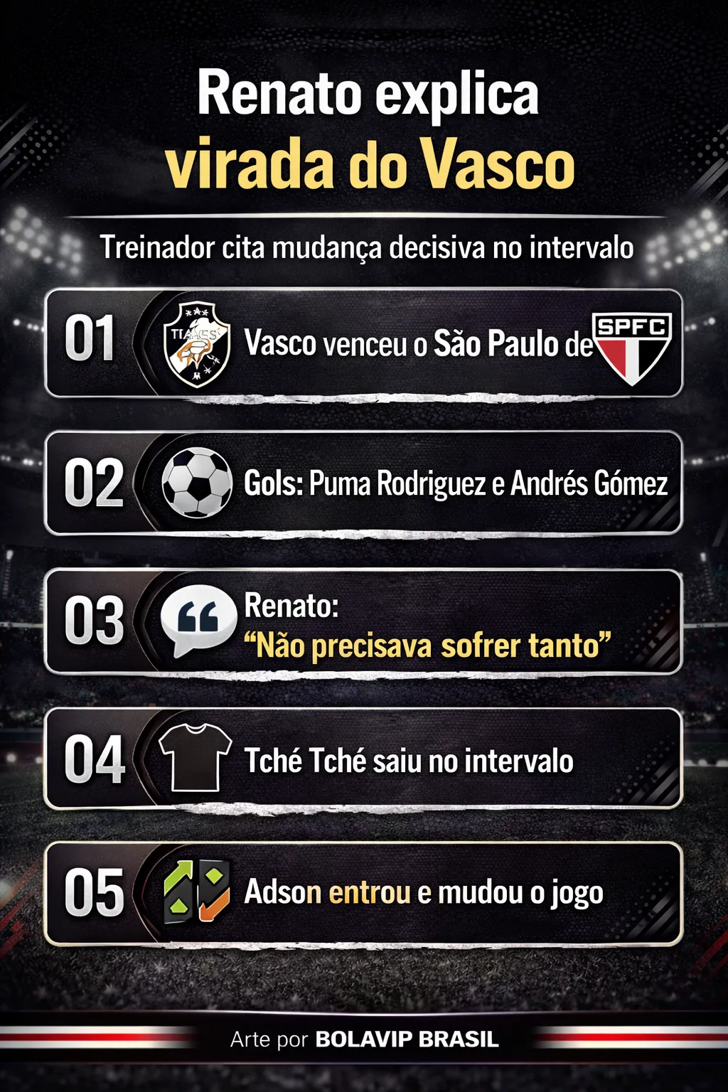 Depois do apito final, o Vascão não apenas somou três pontos fundamentais para sair da zona, como impediu que o Tricolor assumisse a vice-liderança. Ele deu a seguinte declaração na coletiva pós-jogo: