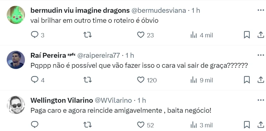 Nas redes sociais, os torcedores não gostaram da novidade e argumentam que o jogador deixará o time paulista de graça. Com isso, os são-paulinos consideram um péssimo negócio da diretoria.