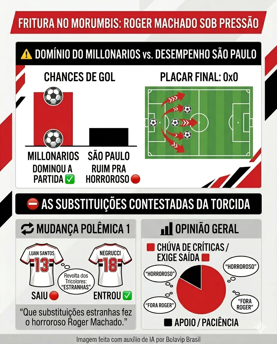O São Paulo decepcionou ao seu torcedor na noite desta terça-feira (28). A equipe de Roger Machado ficou apenas no empate contra o Millonarios, e o placar não saiu do 0 a 0.