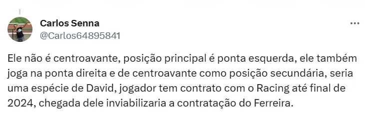 A imprensa argentina, inclusive, noticiou essa semana que Roger Martínez, do Racing, teria sido oferecido ao time do Morumbi. Em paralelo, há negociações em andamento por Ferreirinha, do Grêmio.
