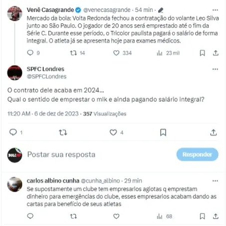 Nessa linha, o Volta Redonda fechou a contratação do volante Léo Silva junto ao Tricolor. Esse acordo feito entre paulistas e cariocas faz com que o jogador de 20 anos seja emprestado até o fim da Série C.