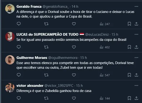Vale mencionar que, por mais que o número geral seja idêntico, são muitas diferenças entre os dois anos, a começar pelo fato do SPFC já ter vencido dois jogos como visitante.