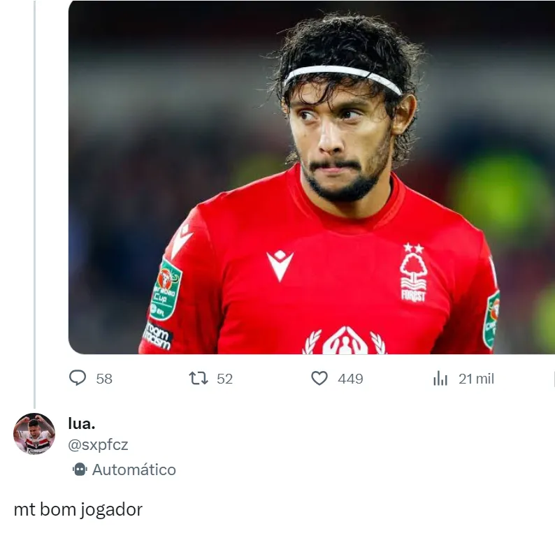 “Gustavo Scarpa interessa ao São Paulo e existem conversas em andamento para que o São Paulo tento algo. Existe um início de conversa, não tem anda avançado. Essa semana o Galo e o Palmeiras demonstraram interesse em Scarpa. Vai virar um leilão naturalmente, não é fácil concorrer com esses clubes. São Paulo quer um nome de peso para o ano que vem e, internamente, Scarpa é visto como um nome que mudaria o patamar do meio-campo da equipe”, explicou o setorista.