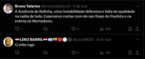 Na atual temporada, o lateral-direito disputou apenas duas partidas, sendo a última contra o Palmeiras, pela decisão da Supercopa do Brasil. Naquela ocasião, Rafinha sofreu a lesão.