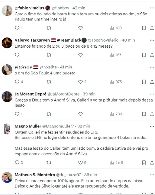 Vale lembrar que neste ano, Calleri foi desfalque nas quartas de final do Paulistão, quando o Tricolor enfrentou o Novorizontino. Na estreia da Libertadores, contra o Talleres, o atacante também não estava à disposição.