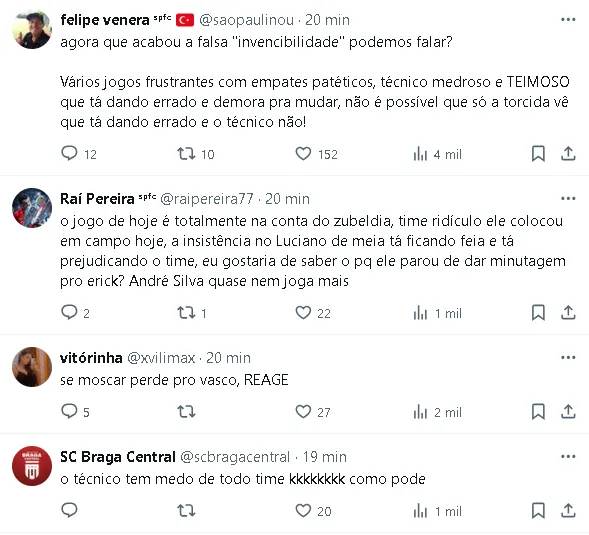 A invencibilidade de 12 jogos do técnico Luis Zubeldía no São Paulo chegou ao fim nesta quarta-feira (19), no Morumbis, onde a equipe foi surpreendida pelo Cuiabá e derrotada por 1 a 0, com gol de Eliel no segundo tempo.