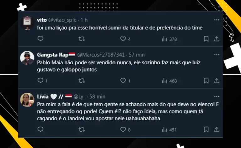 Com isso, alguns jogadores do Tricolor foram aos microfones e falaram sobre a derrota, como foram os casos de Lucas Moura e Luiz Gustavo. Este último, inclusive, deu uma entrevista que chamou atenção pelo tom de cobrança e pela “cutucada”: