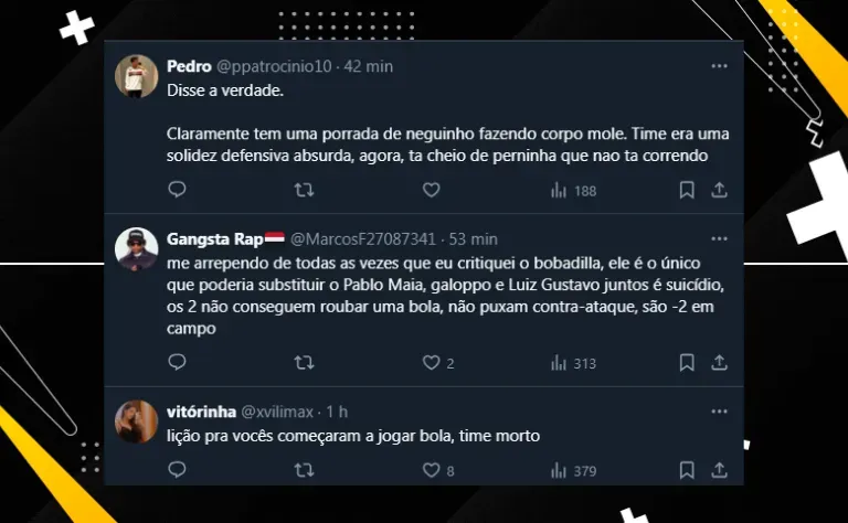 Além disso, como o treinador vem realizando algumas escolhas que o torcedor não aprova, o argentino já passou a ser questionado por parte da torcida e vem sendo cobrado por melhores resultados no Brasileirão.