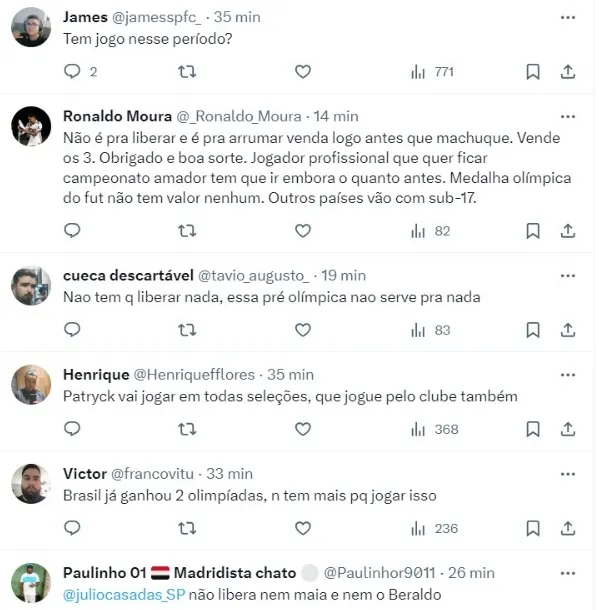 Patryck, Pablo Maia e Beraldo foram convocados para a Seleção Brasileira Pré-Olímpica para a próxima data da Fifa (entre os dias 13 e 21 de novembro).