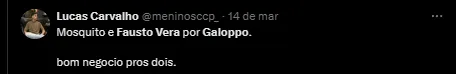 Nas últimas horas, o assunto de uma troca no mercado da bola tomou conta das redes sociais. Surgiu um boato de que o meia-atacante argentino do São Paulo, Galoppo, e seu compatriota, o volante Fausto Vera, do Corinthians, poderiam ser trocados.