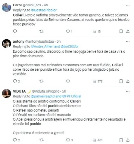 Por conta disso, segundo apurou a ESPN, Calleri pode ser denunciado ao TJD-SP (Tribunal de Justiça Desportiva de São Paulo) pela participação na confusão ocorrida no túnel, em decorrência de imagens.