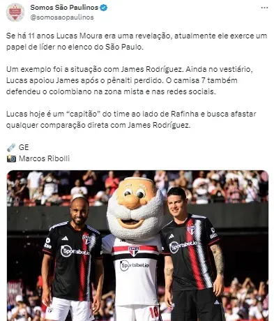 De acordo com informações publicadas no site Globo Esporte, uma decisão foi tomada no Tricolor sobre a situação de James Rodríguez. O jogador sofreu uma pressão externa após errar o pênalti que acabou gerando a eliminação na Copa Sul-Americana. Aconteceram muitas comparações entre ele e Lucas Moura.