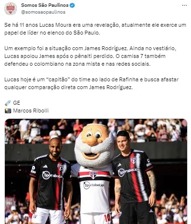 Enquanto o atacante brasileiro soma boas atuações e alguns gols desde seu retorno, o meia colombiano somou sua primeira participação em no gol no duelo contra a LDU. O São Paulo decidiu blindar James Rodríguez de comparações com Lucas para ajudá-lo em sua adaptação e sequência no time.