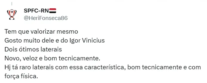 “Na minha opinião, o clube demorou um pouco para oferecer a renovação e demonstrar interesse pela continuidade do atleta, já que, agora, faltam apenas cinco meses para ele poder assinar um pré-contrato com outra equipe e sair do São Paulo de forma gratuita, sendo que o jogador é muito bem valorizado no mercado nacional e internacional”, disse o agente.