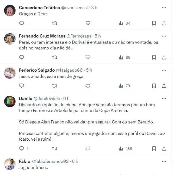 O comunicador informou que o São Paulo tem interesse e Dorival Junior é entusiasta da contratação do zagueiro, já que trabalhou com o defensor no Rio de Janeiro.