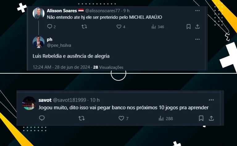 De qualquer forma, o rendimento de Ferreira foi bastante elogiado pelo torcedor, que criticou o “sumiço” do atacante nos últimos jogos e está cobrando uma maior utilização do ponta.