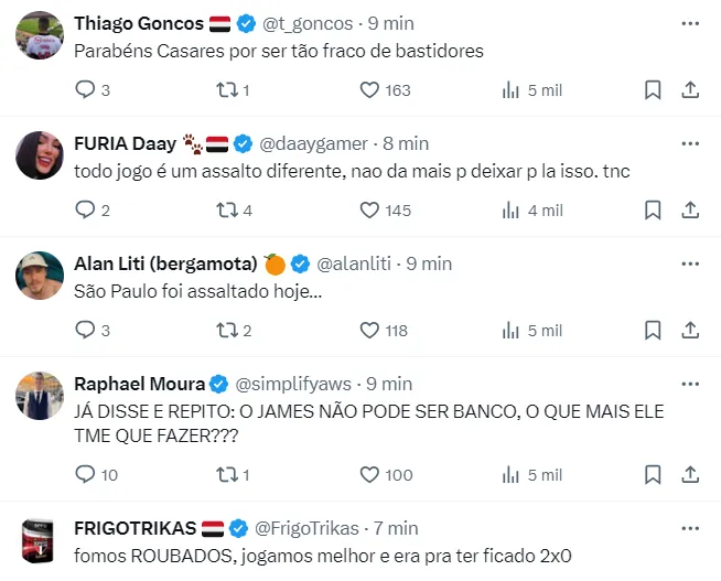 Nas redes sociais, a torcida são-paulina reclama da arbitragem do clássico.