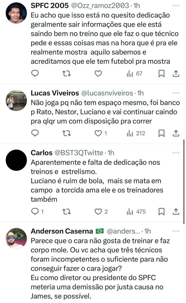 “Alguém sabe me dizer de fato o que acontece com James Rodriguez? Por que não joga e etc? Curiosidade danada para saber qual é esse mistério. Não que ele faça falta, mas veio como um reforço de luxo, caro mas e aí? Quem sabe os bastidores disso para me contar?”, questionou o ator em seu Instagram.
