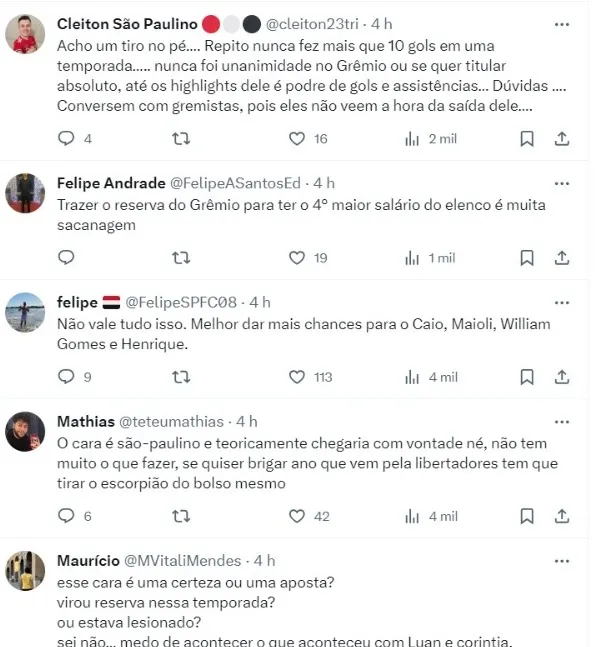 Consequentemente, com o Grêmio não existe nada da parte do jogador. Clube tenta viabilizar Ferreira e busca alternativas, cogitando atletas, mas pelo menos da parte de Luan, não houve essa procura.