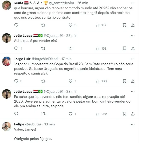 Seu novo vínculo vai até dezembro de 2026, tendo um a mais do que o anterior, que era até 2025. Ele teve uma pequena valorização salarial, visto que não tem nem de perto um dos maiores salários do elenco.