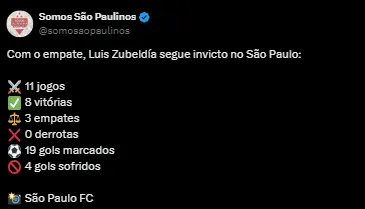 Apesar do bom momento vivido pelo São Paulo, alguns fatores vêm dividindo a opinião do técnico Luis Zubeldía, que mandou um recado para a torcida após o empate.