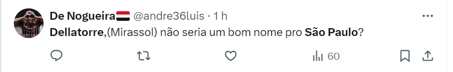 Já neste domingo (25), surgiu a especulação envolvendo o atacante Dellatorre, destaque do Mirassol no Campeonato Paulista. Mas, como informou Jorge Nicola, o Tricolor não tem nenhuma negociação em andamento com o atleta de 31 anos.