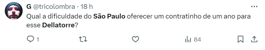 Jorge Nicola informou que a diretoria são-paulina considera Dellatorre um jogador interessante, mas não abriu negociações com o atleta. O foco dos dirigentes é contratar André Silva, do Vitória de Guimarães, de Portugal.