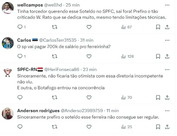 Ainda há questões pendentes a serem acordadas, como a composição do empréstimo até o final de 2024. Já sobre Ferreira, o São Paulo deve pagar algo em torno de R$ 8 milhões por 35% dos direitos econômicos.