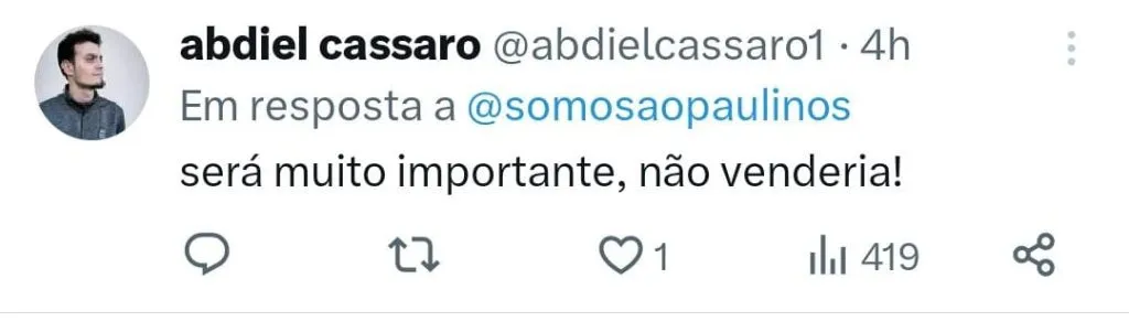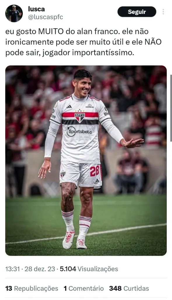 “Não houve nada por parte do Alan Franco, nem dos empresários dele, até agora. Então o Alan Franco é atleta nosso, tem contrato conosco.”, contou em entrevista ao Blog do São Paulo.