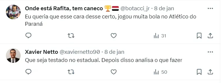 Diante disso, a gestão entende a importância de dar carta branca ao profissional para que consiga apresentar a evolução necessária no elenco, dando oportunidades a jogadores que podem se encaixar na forma de jogar do novo treinador.