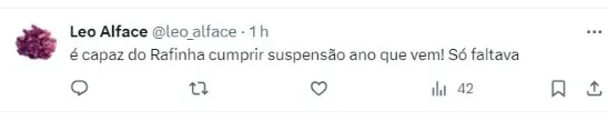 O lateral-direito são-paulino seria julgado por chamar o árbitro Raphael Claus de “palmeirense”. Rafinha, vale lembrar, havia sido expulso no clássico contra o Palmeiras e proferiu as palavras contra o dono do apito ao reclamar da decisão.