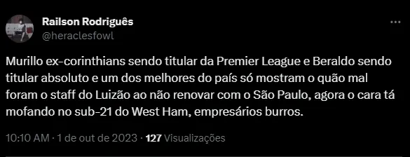 Já o seu parceiro na base do São Paulo, Beraldo, é titular absoluto do Tricolor e alvo de clubes europeus. A diretoria são-paulina toma cuidado para não repetir o mesmo descuido da saída de Luizão.