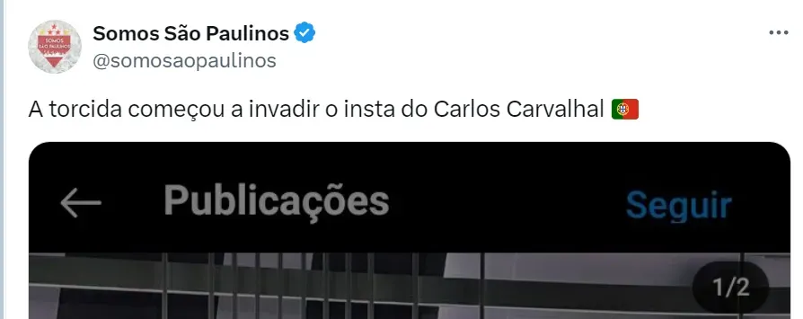 Os torcedores já foram no perfil de Carlos Carvalhal no Instagram pedindo para o profissional português vir trabalhar no Tricolor. Os tricolores comentaram na rede social: “Vem para o São Paulo, mister”.