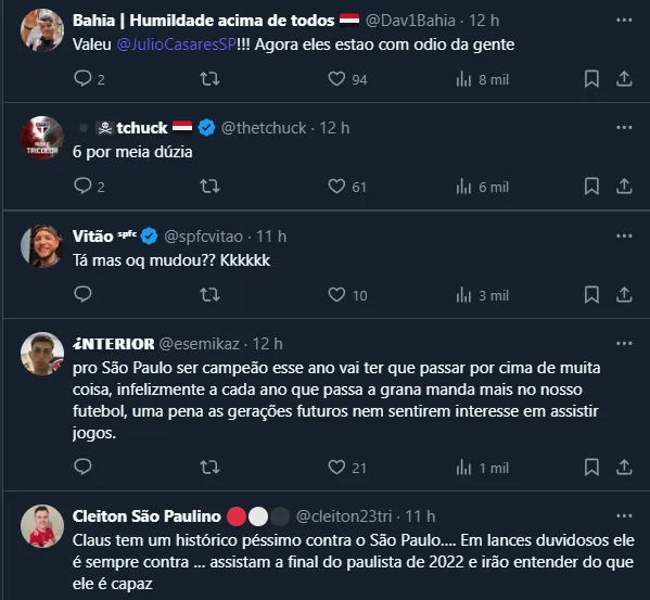 Dessa maneira, apesar da opção da FPF por Claus ter sido tomada justamente para evitar maiores problemas, já que trata-se de um árbitro consagrado, não foi bem assim que a escolha foi vista entre os são-paulinos.