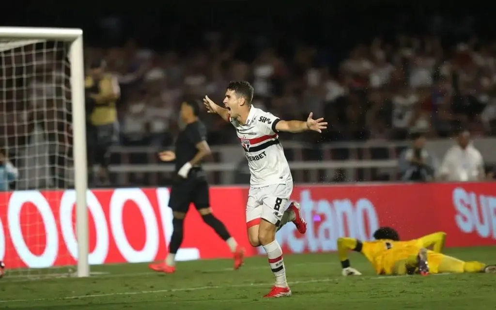 O camisa 8 lançou Lucas, que arrancou na velocidade, ganhou na defesa e só rolou a bola para Calleri, sem goleiro, completar para as redes. Uma grande jogada coletiva da equipe comandada por Zubeldía, que conseguiu abrir placar e chamar atenção de todos.